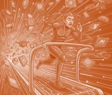 We're trapped in an AI arms race, constantly forced to upgrade our skills just to keep up. Big Tech companies now profit from a "disruption-as-a-service" model, intentionally creating a cycle of rapid technological churn that makes our knowledge obsolete.